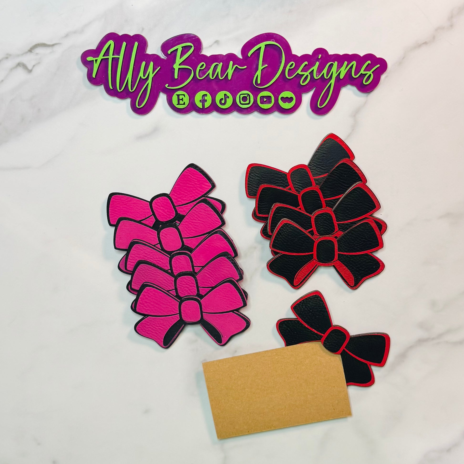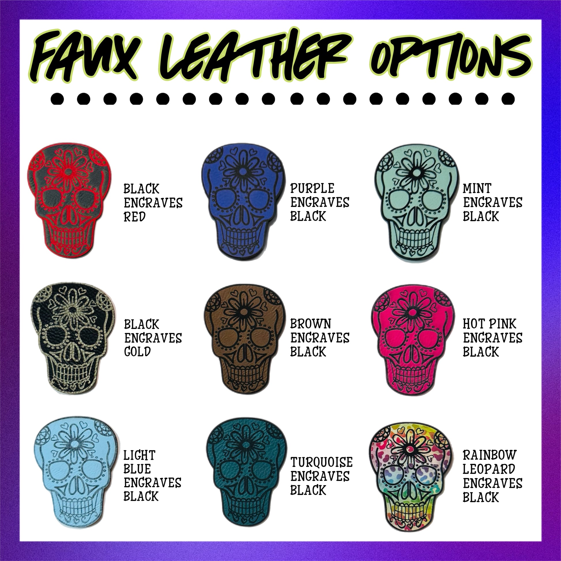 Laser cut and engraved in-house from high quality, durable faux leather.