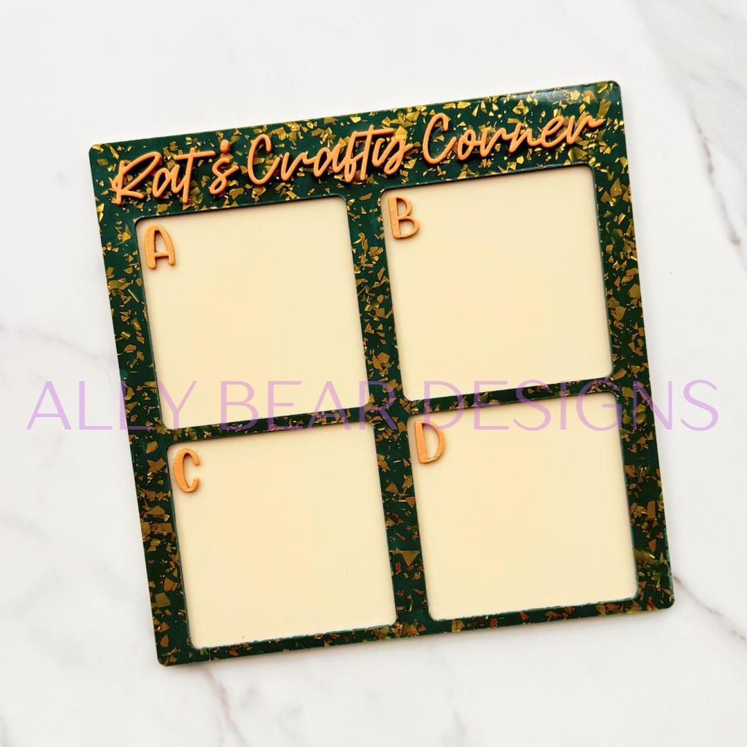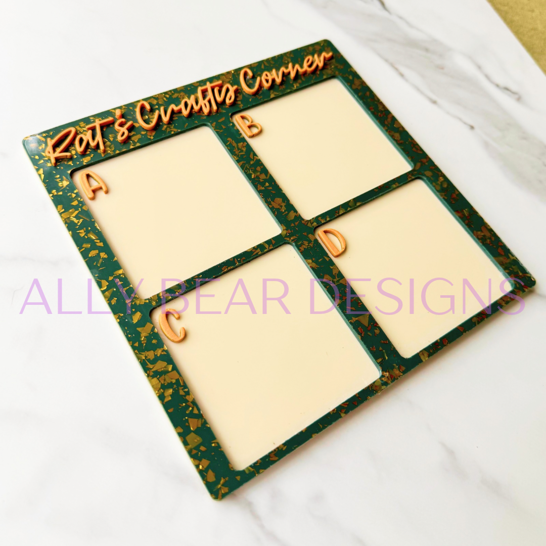 Each option section is approximately 2.75”x2.75”. Please leave a note, if you would like smaller option areas, allowing for more options.
