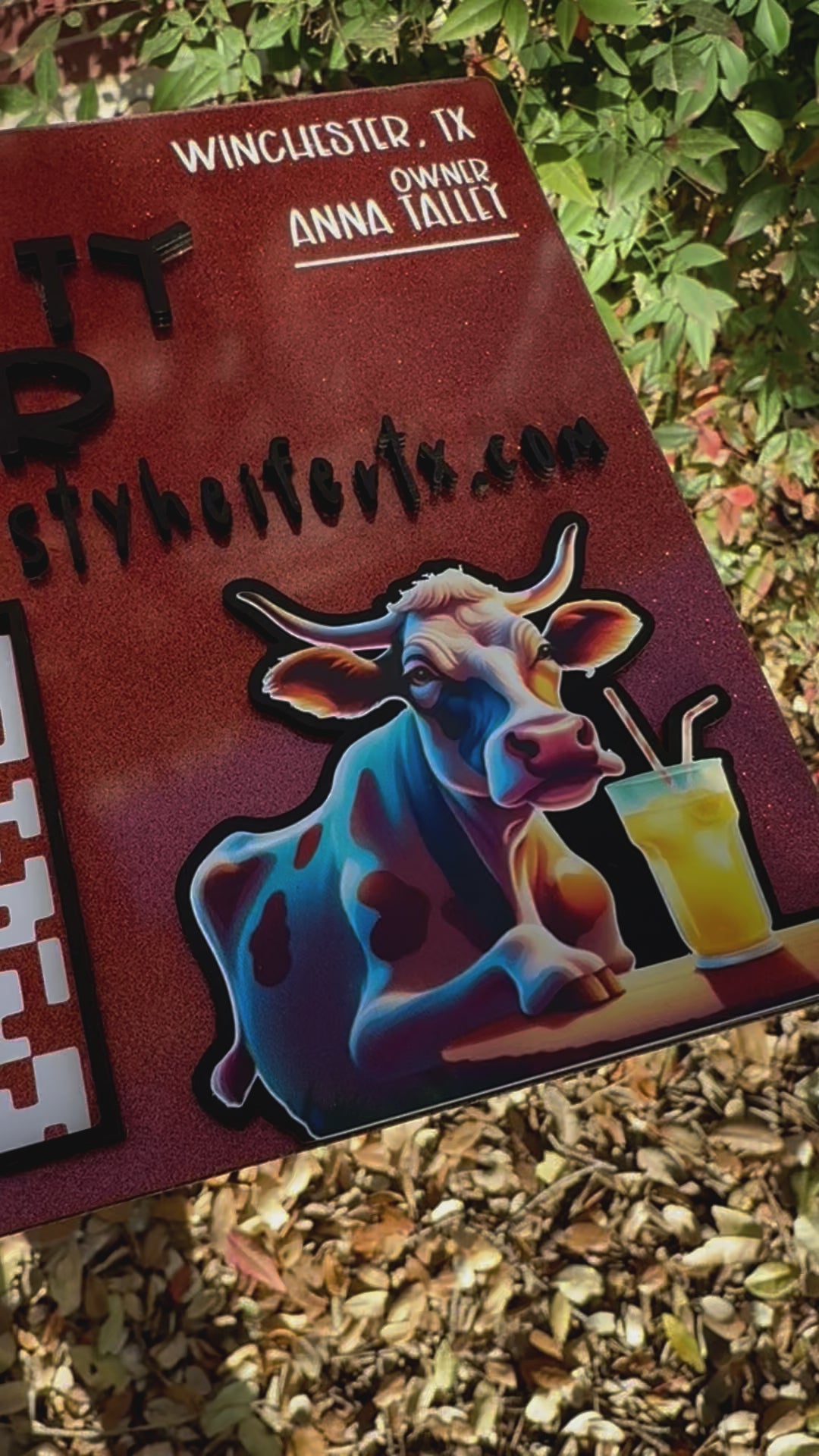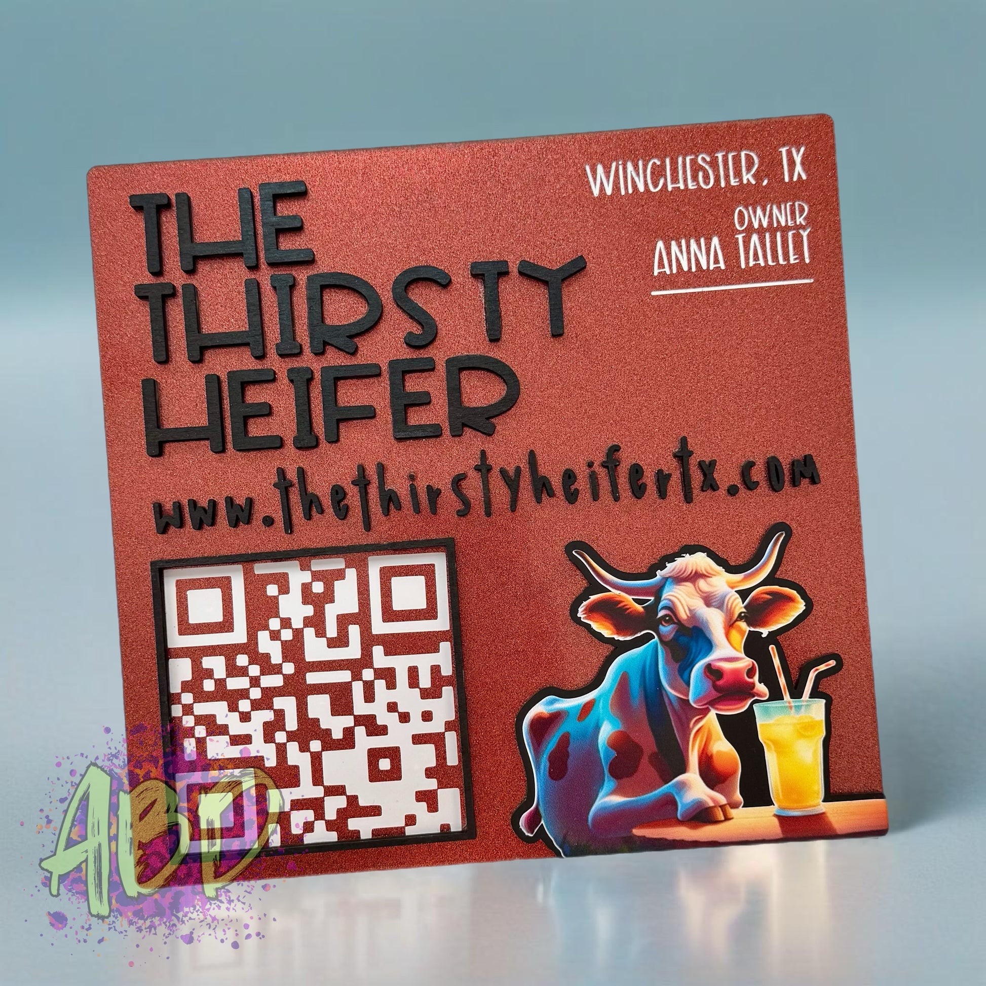 Laser cut and/or engraved in-house from acrylic and/or hand painted wood. Details may be engraved with color added, or with vinyl.